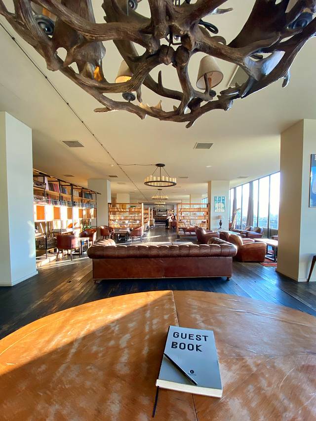 餐厅布置的像图书馆一样,落地窗外就是观景平台