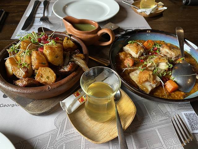 整个古多里餐厅不多,多以当地食物为主,山上以简餐快餐为主,一份8-20拉里,热巧、红茶都在5拉里左右一杯,茶类不可续开水,建议自带水