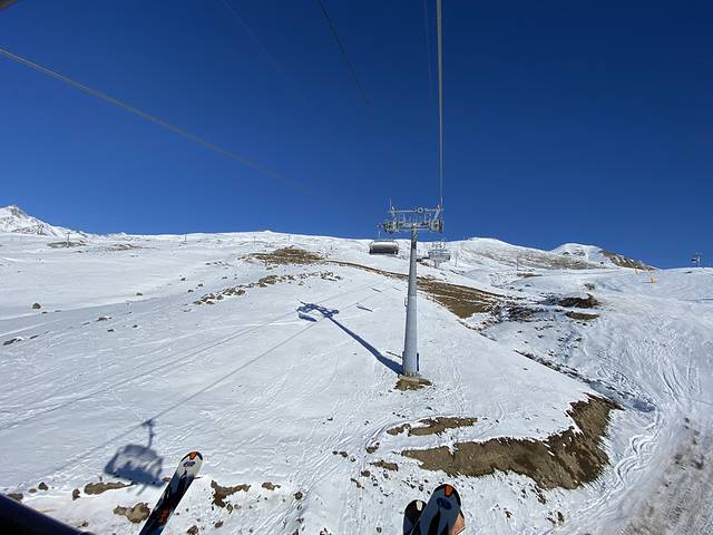 1号缆车终点处,看这个雪道…全是土和冰,我们刚到那时已经很久没有下雪了,完全没有人滑