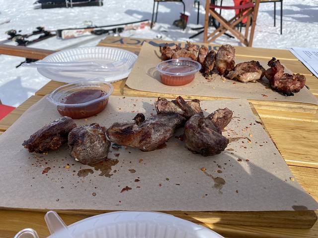 国外不像国内有专门的雪具大厅,外国人几乎都是自带装备,所以租赁雪具的地方一般都是小小的一间,价格都差不多,一般50拉里/人(包含雪鞋雪板雪仗),需要压一个人的护照,人多的话还可以还个价,人少一般不给还,头盔和雪镜我们是自带的,租赁的话是每一项15拉里/人,这里的租赁店都比较原始,没有电脑,纯靠手写记录,有些店付款可以刷卡,有些只能现金,要事先问清楚