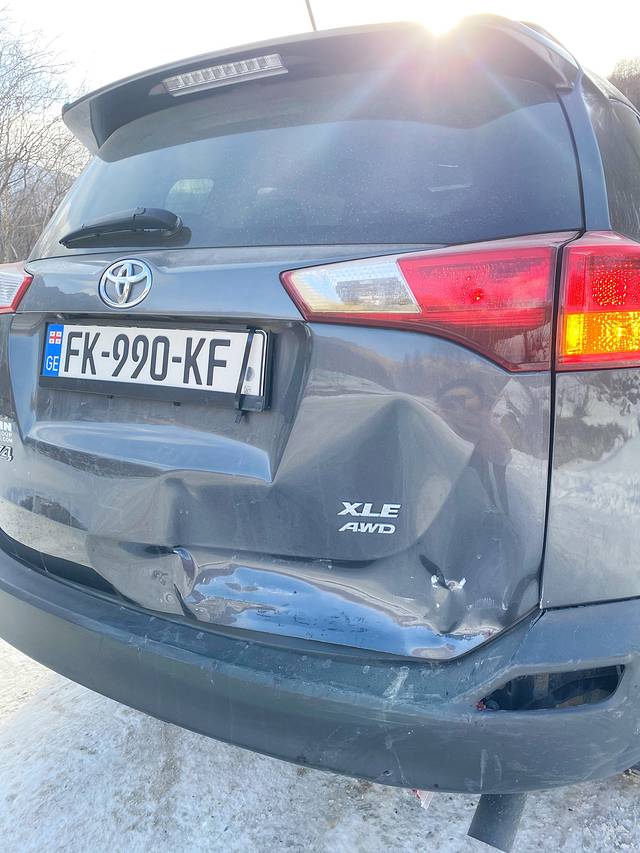 对方是两个不会英语的当地人,完全无法沟通,一直在做一个要钱的手势,但我们买了全险,不可能直接给钱私了,只能各自先拍照取证,然后我们联系租车行,把照片发给他们看,并把事故原委说一遍