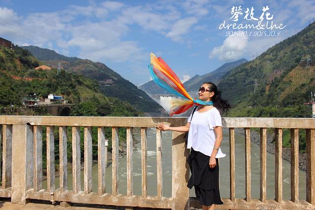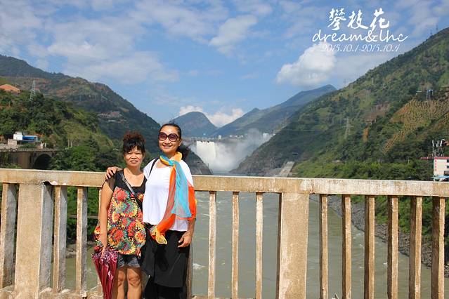 哈哈,两位亲家在三滩的桥上合影,远处就是二滩正在泄洪