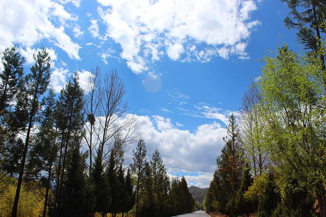 下面这几张照片是在路上拍摄的,西昌到泸沽湖的汽车要坐六七个小时,路上会有几个休息站下车休息,随手拍了几张蓝天白云。