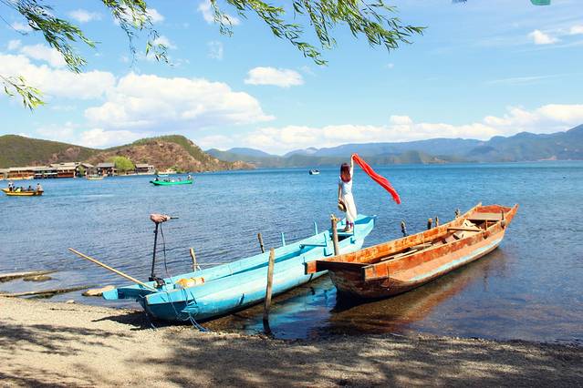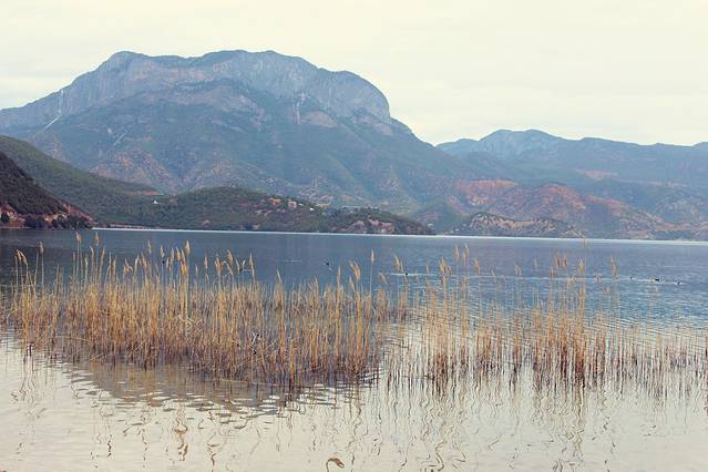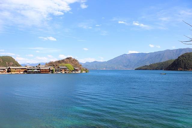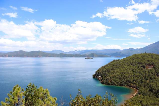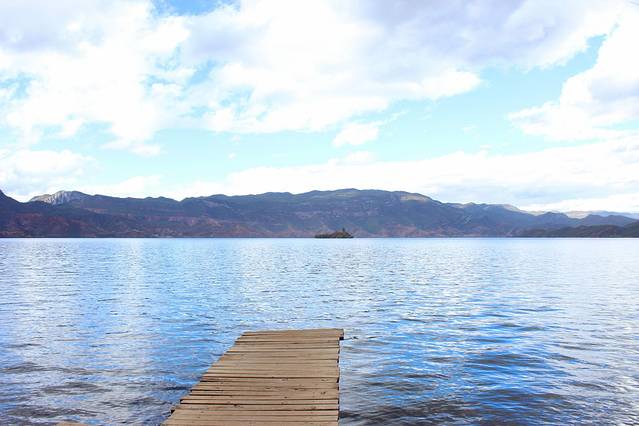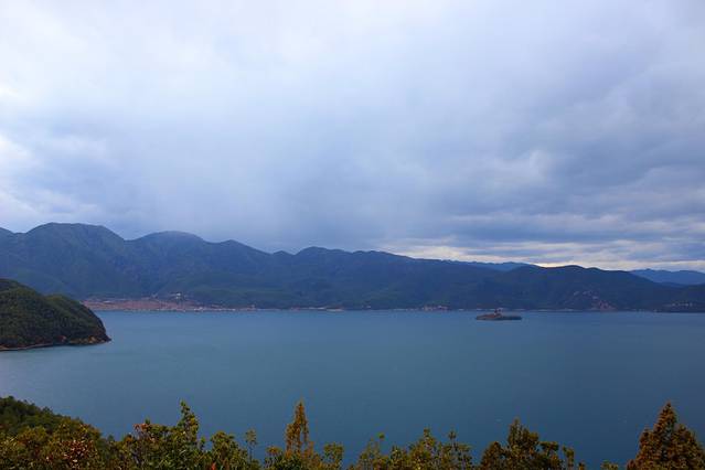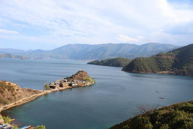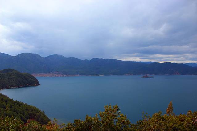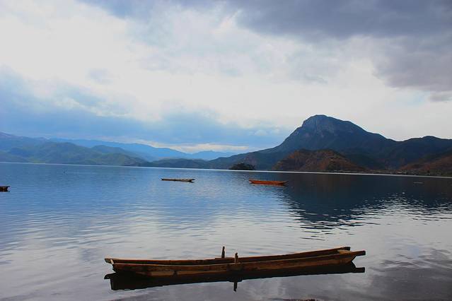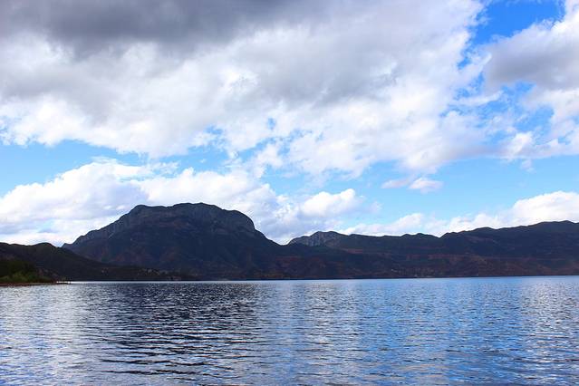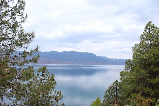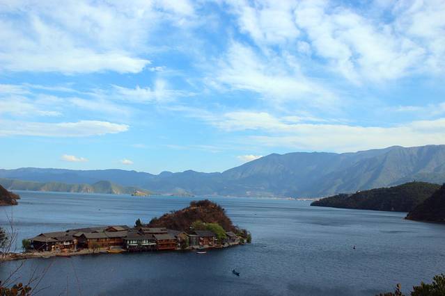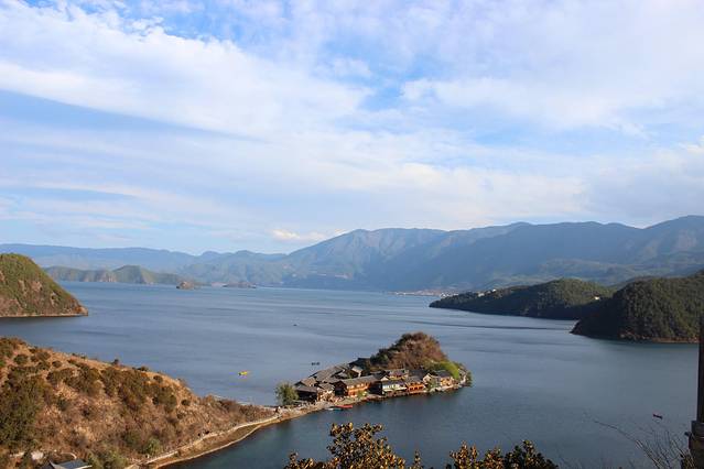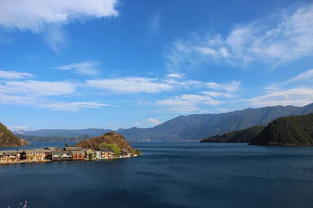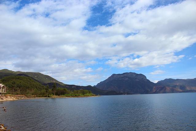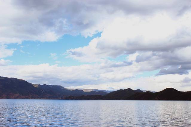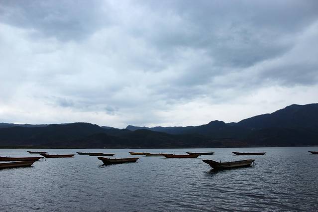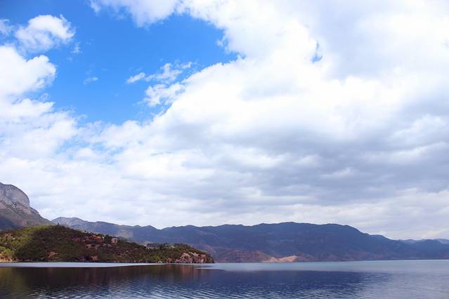 大概下午3点多,终于到达泸沽湖了。天气有点不给力,泛着几朵乌云。