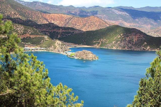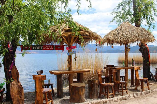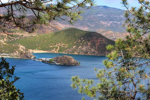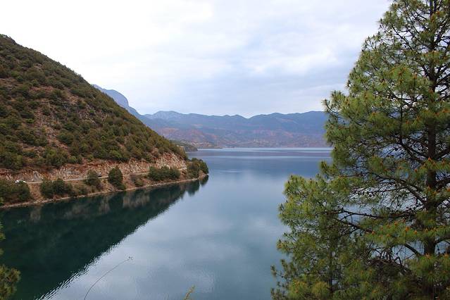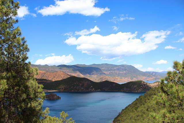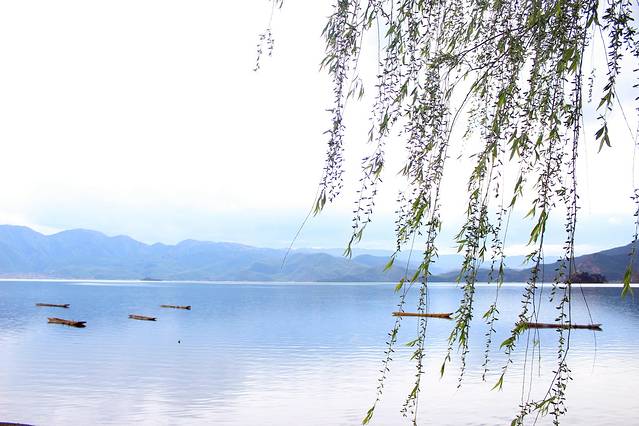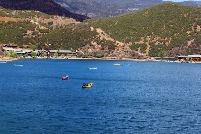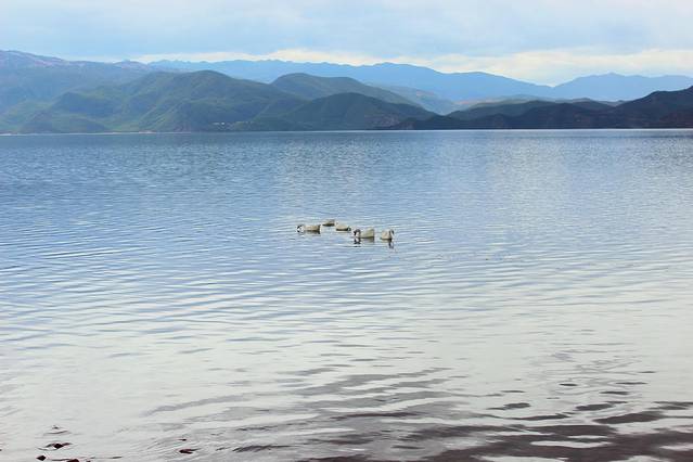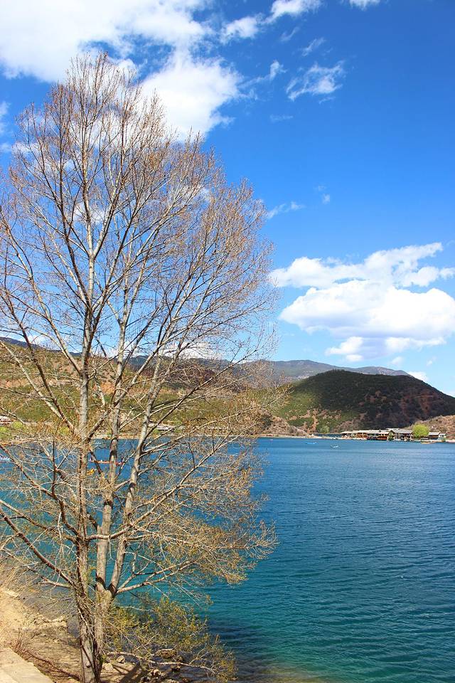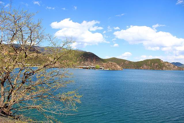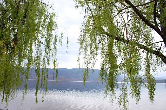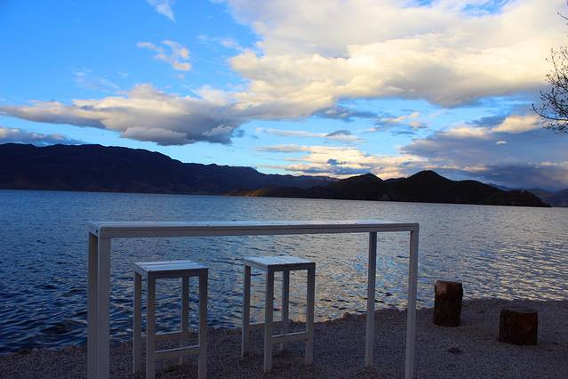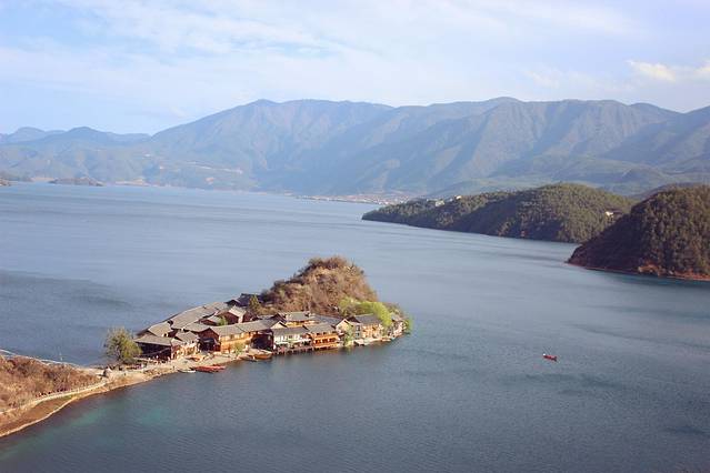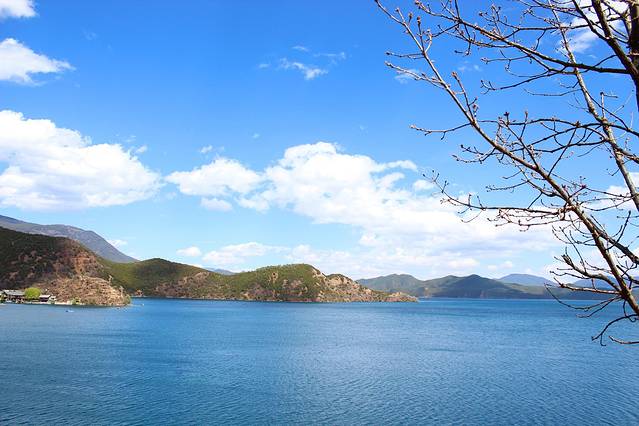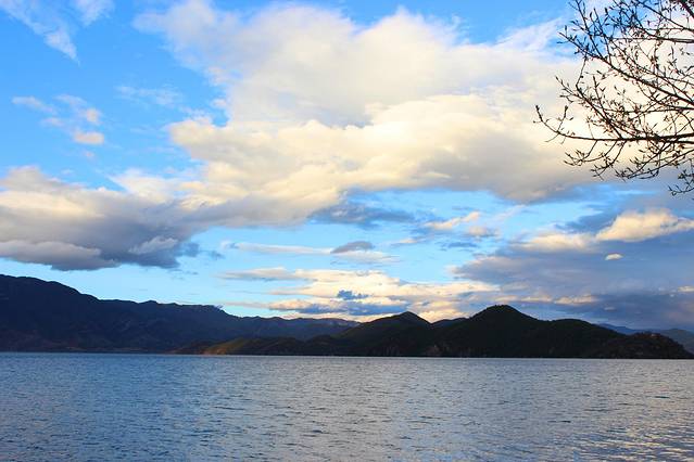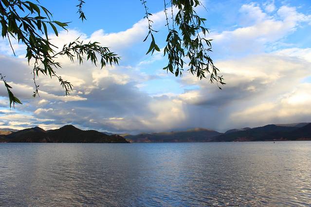 大概下午3点多,终于到达泸沽湖了。天气有点不给力,泛着几朵乌云。