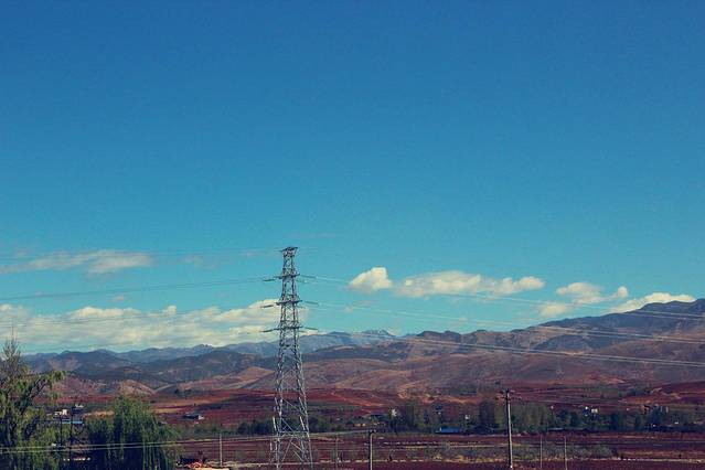 蓝天、白云、红土地....