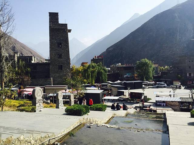 首先来到了桃坪羌寨,这里是羌族人民的聚集地,建筑物比较有特色,都是用一小块一小块的石头垒起来的。这里的居民都不多,都是一些老人,在自家门口贩卖一些手工艺品。参观的人也不多,走走停停就当消遣一样。