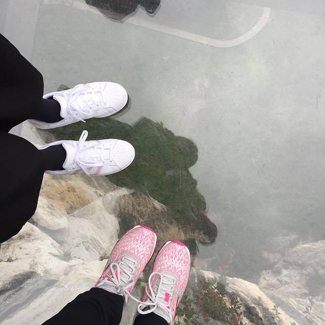 先去了玻璃栈道,是一块大概向前延伸有五米的玻璃平台,不是沿着悬崖边的栈道,一开始还有点头晕目眩,但是适应了之后便开始了自拍模式。但是后面来的人越来越多,真担心这栈道支撑不住,所以赶紧撤了。