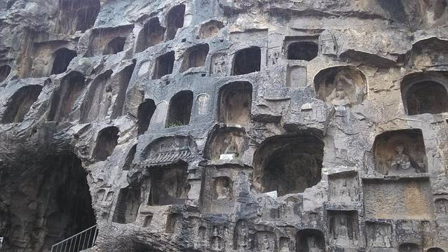 万佛洞:因洞内南北两侧雕有整齐排列的一万五千尊小佛而得名。龙门石窟总共有10万余尊像,这里就占了1/10,是唯一两位女性设计的洞,该洞窟是在宫中二品女官姚神表和内道场智运禅师的主持下开凿的,相当的细腻,体现了当时武则天时期女性地位的提高。