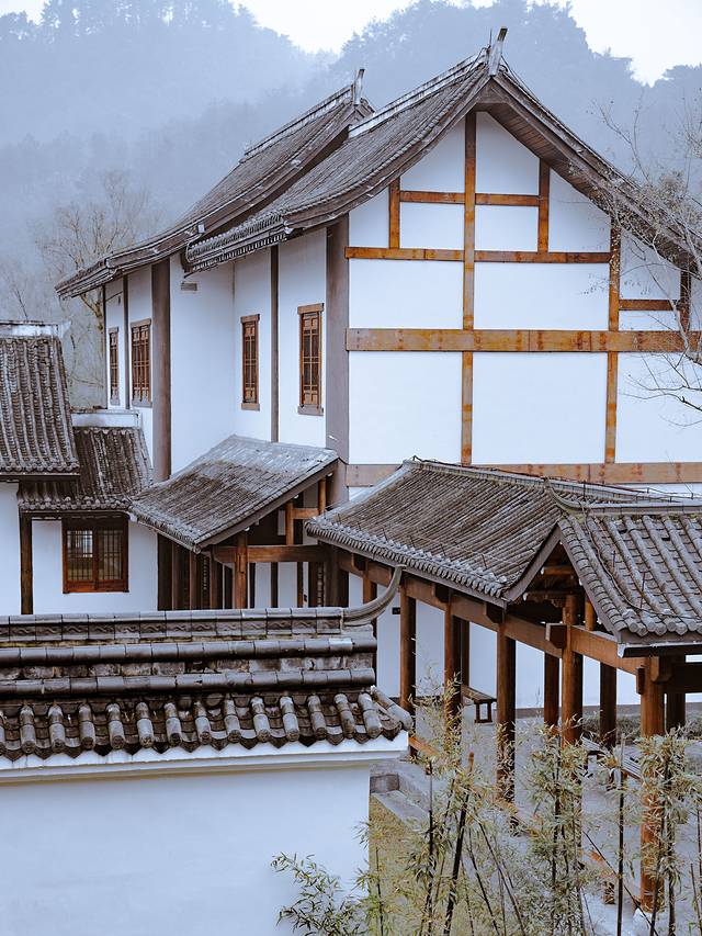 特别值得一提的是,酒店园区的环境,徽派风格的建筑,白墙青瓦,结构严谨,雕镂精湛,自然得体;苏州园林设计感十足的园区,亭台轩榭,假山池沼,小桥流水,相得益彰,偶遇红枫,分外惊艳。