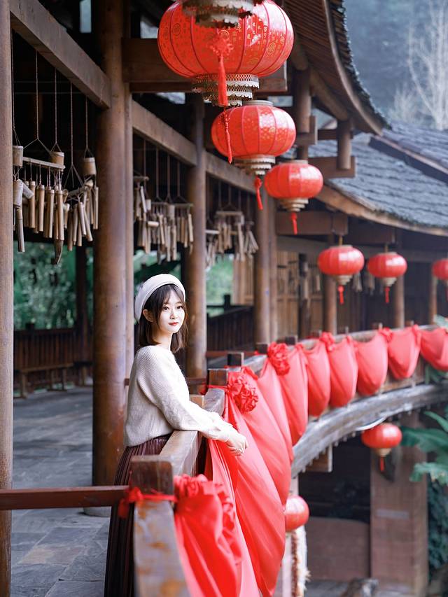 大红灯笼高高挂,装饰着古朴的阁楼,显得格外有生气。站在阁楼上,拍了几张,这里也太出片了吧。