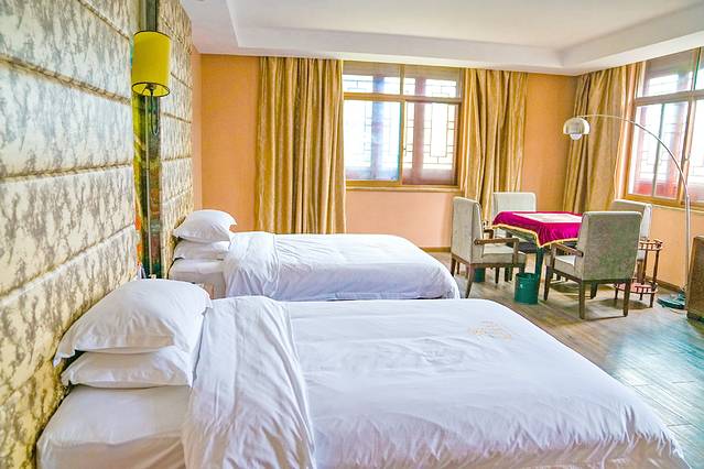 桃花源酒店是景区内最标准化的酒店,功能性足,客房79间、餐饮包厢8个、宴会厅1个,此外,会议室、商务中心、咖啡厅、健身房、棋牌室等配套设施一应俱全,无论是情侣度假,还是家庭出游,或是公司团建,都可以满足。早餐主要是中餐,餐厅环境大,干净宽敞,标准化专业化十足。工作人员非常热情有礼,服务很棒。