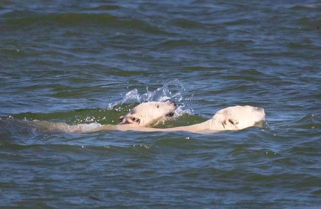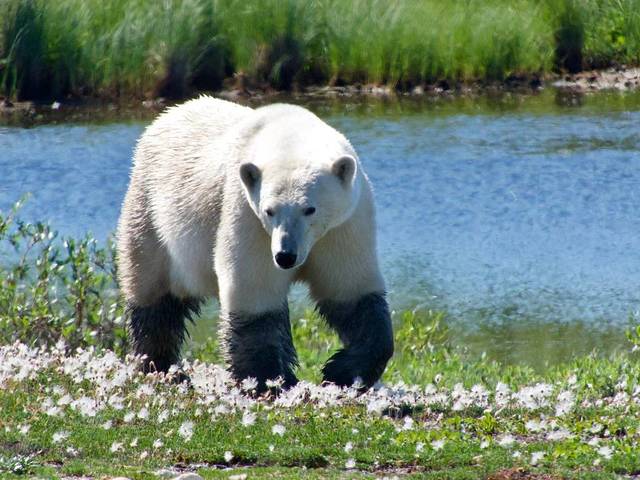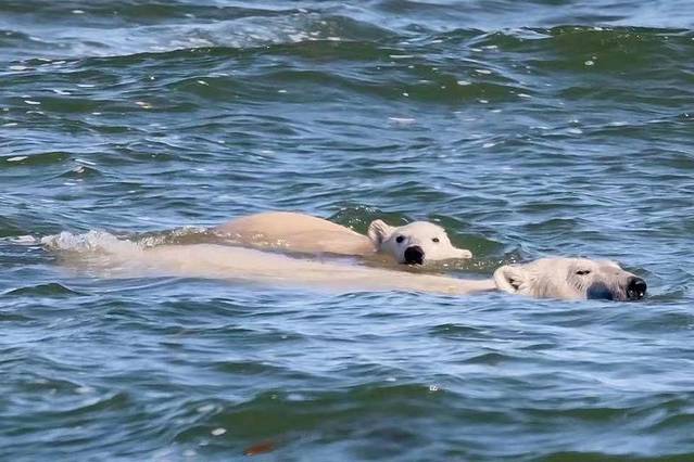 除了可以看看景点,当然还可以拍北极熊,因为有太多难得的瞬间出自于此!看北极熊和观鲸已经不是什么难得的事了,而看北极熊吃白鲸,这一幕还是极少数人看到过的!上面提到白鲸最大的天敌就是北极熊,为什么呢?有人会问,白鲸在海里,北极熊怎么能抓的住他呢?那您就真的小看北极熊了,北极熊不只会游泳,还是个游泳健将哦!夏天丘吉尔滞留了很多母子熊,熊妈妈为了给宝宝寻找吃食,下海捕白鲸是不错的选择!看着憨憨可爱的北极熊,可吃起白鲸,满脸是血的时候,可爱这个词也就烟消云散了!这种场面只会发生在丘吉尔,而与它四目相对的体会会让你此生难忘!