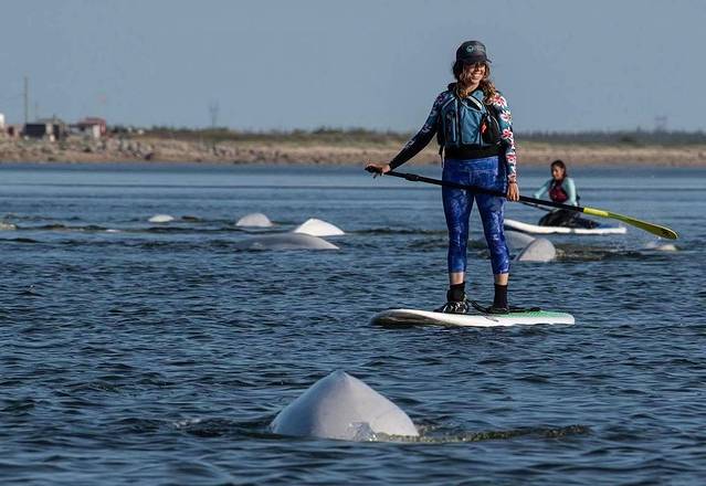 每年的7-9月份被称为白鲸季,丘吉尔以北极熊首都而闻名,而每年的夏季,由于哈德逊湾的温度适宜他们产崽,所以会有成百上千的白鲸涌入,数量多到,即使你站在岸边也能看到很多!白鲸最喜欢的就是泡泡,所以每当船或快艇在海面上滑行时,上百条白鲸会追随其后,并舒展着他们的歌喉,场面超级震撼!如果您划的是独木舟的话,众多白鲸还会在下面顶你的船,跟你玩耍,当然,你很有机会翻船掉进大海里,不过不用担心,第一,每个游客都要穿着救生衣,会漂浮在海面上。第二,白鲸是没有攻击力的,不会吃人,也不会伤害人,他们很友好!第三,都会有专业的救生员,如果发生危险,他们会第一时间帮助你!很多朋友在国内的极地海洋馆已经看过白鲸,但在丘吉尔真正值得看的是白鲸群和体验与白鲸嬉戏的美好!与大自然混为一体的感受,相信一定让你卸掉所有包袱,忘记忧愁与压力,尽情的释放吧!