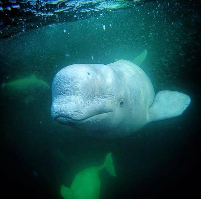 每年7月,成千上万头白鲸从北极地区出发,开始它们的夏季迁徙与繁殖。白鲸和北极熊最大的不同,白鲸是群居动物,其分布在沿环北极、亚北极的加拿大、阿拉斯加、格陵兰、挪威和俄罗斯的沿海等。在丘吉尔会看到很多灰色的白鲸,那些都是幼崽,他们在5-6岁左右才会变为真正的“白”鲸哦!不过虽然他们喜欢在北极熊首都的地界里畅游,但他们的天敌却是北极熊!