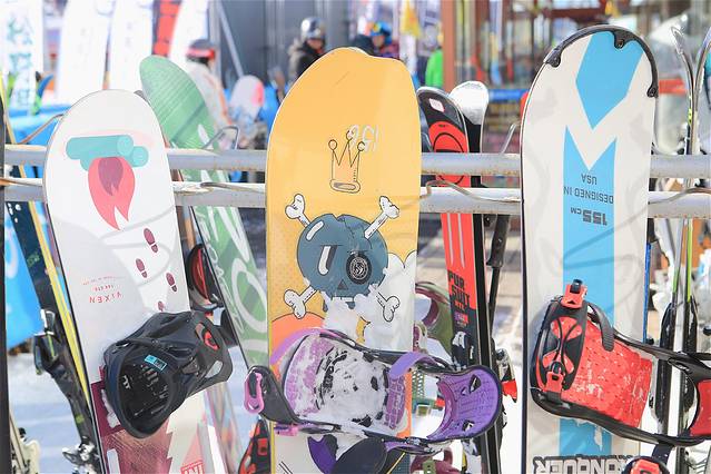 万龙室外有充裕的雪板架
