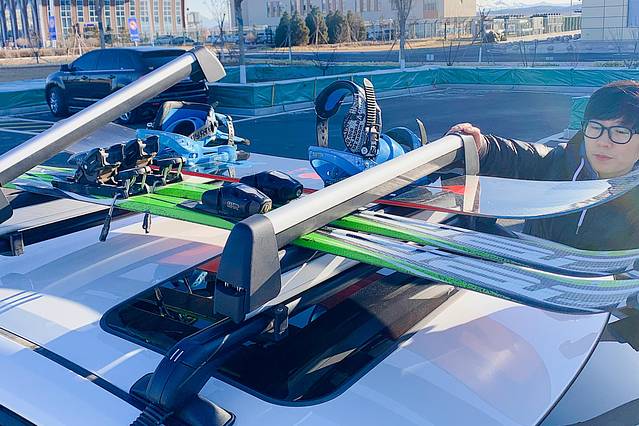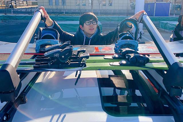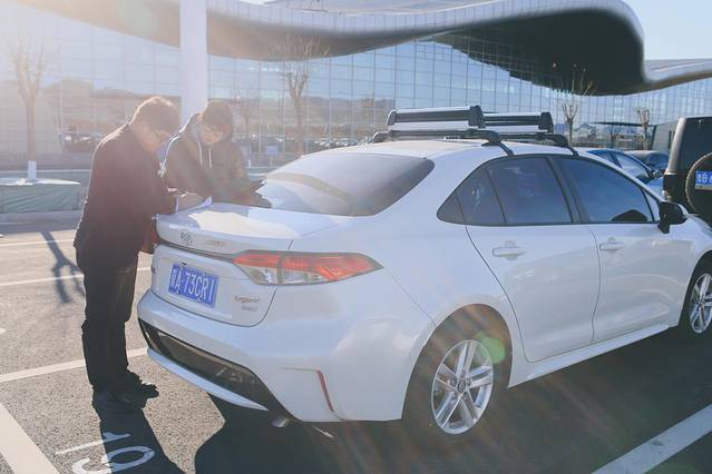 飞机9点半落地张家口,广汽丰田的师傅已经在停车场等待,碰面后简单沟通,他就帮我做提车相关手续,报备车况,填写租车协议,交钥匙和车本,还帮我们把雪板装上雪板架。真的手脚麻利、礼貌专业。除了汽车雪板架,师傅特意告诉我轮胎也是雪地胎,放心开。