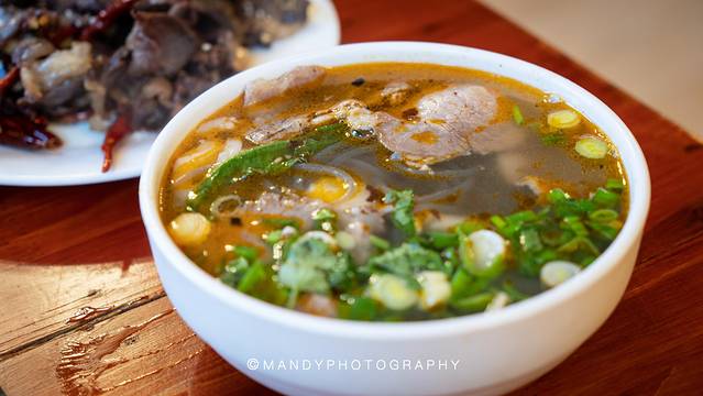 ↓ 牦牛肉米线。来到米线王国,对早餐的尊重就是来一碗云南米线!午餐的话我就把米线当一道菜了,水煮的牦牛肉,又是另一番又嫩又鲜的滋味,加上少许葱花香菜,碳水的快乐这么简单!