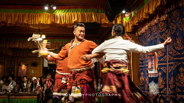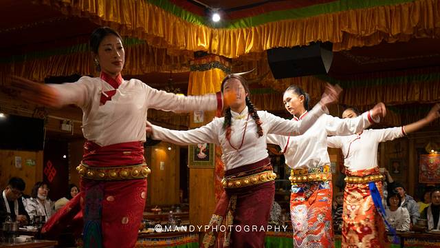 听客栈老板说,去当地土司家里吃饭还能看藏族的歌舞表演,我们来不及犹豫就报名了。选了当地这家最有名的(最卖座的)扎雅土司,度过了一个商业化的闹哄哄的夜晚。