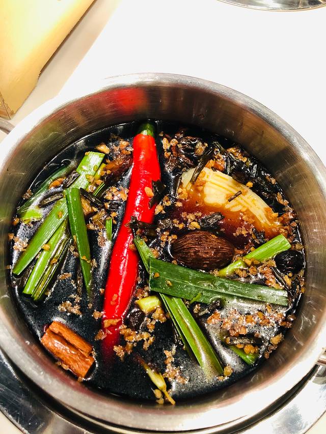 第一次尝试卤水火锅,感觉卤水味道比较淡,一人一锅比较干净~ 赠送的解腻青芒汁酸酸甜甜的很好喝。