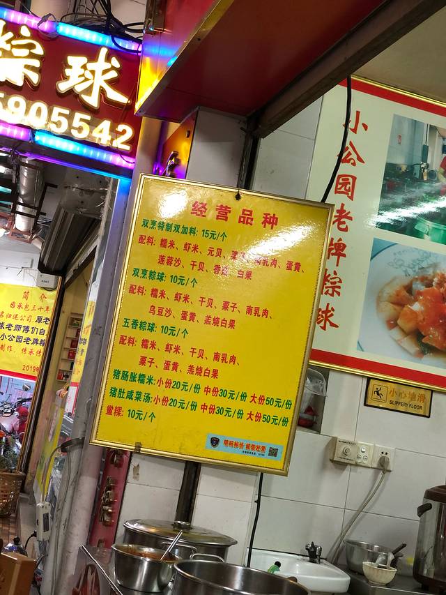 小公园粽球店面很小,里面挂着各种牌子~还介绍了制作粽子的过程。
