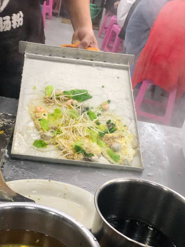 机场点的“蚝烙煎”不知道和蚝仔煎/蚵仔煎到底是不是一样的东西。在福建吃蚵仔煎的时候是那种中间勾芡的,透明状的。在潮州的潮汕楼吃的也是那种口感的。这次在机场吃的蚝烙煎个人更喜欢,没有透明的黏糊糊的状态,端上来有点儿葱油饼的香味儿,吃着像油饼面,但是又有鸡蛋的口感🤔️~ 知道这两种到底有什么区别的小伙伴可以在评论区给我科普下哇😁