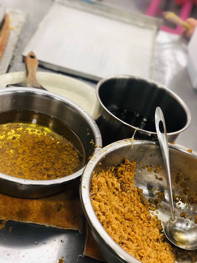 杏仁茶,比较稠,应该是加了糯米粉的原因吧,没有苦味较甜。个人更喜欢路边随便买的另外一家杏仁茶入口微微的杏仁苦味,回味味甜,细腻却不稠哈哈哈,可惜没注意店家叫什么名字
