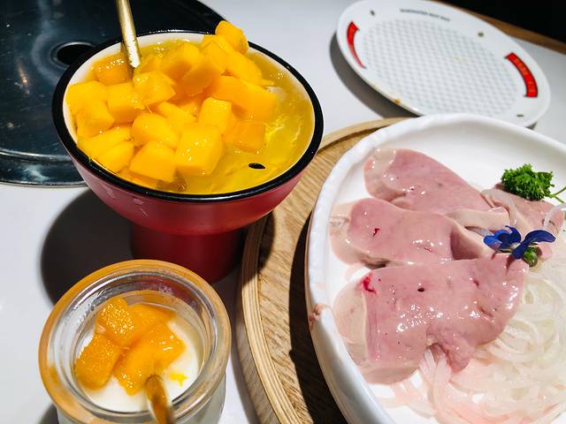 鹅肝(应该是粉肝,很细腻且肥而不腻)。不过鹅肝涮着吃,蘸料感觉遮住了鹅肝原本的味道,不蘸料又觉得确实点味道...感觉还是煎鹅肝更好吃些。