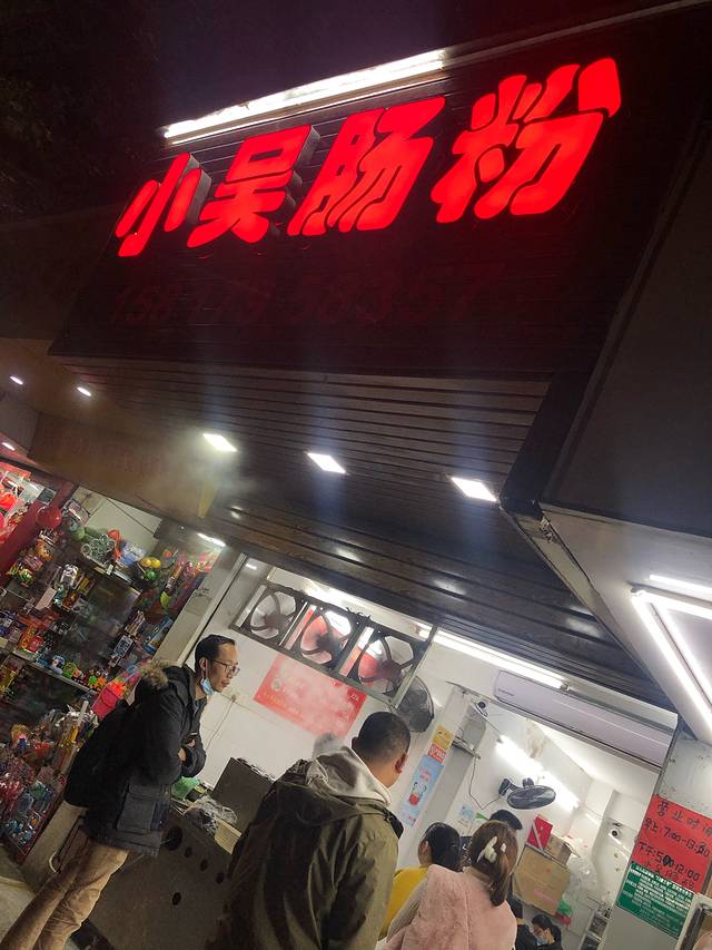 晚上十点多去的店里也坐满了人,打包带走的排队也有四五个,看着人不多也等了有十多分钟。小吴肠粉就在杨记杏仁茶边上一点