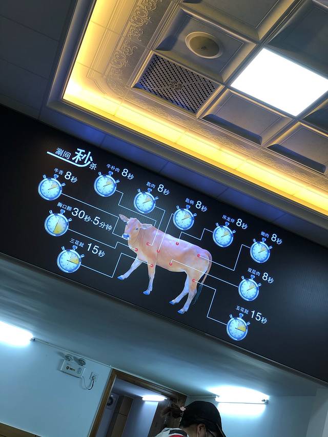 店里写着牛的每个部位涮多长时间,菜单上也写的,比较贴心。我们后来加单的牛脊髓和牛蛋,服务员上菜时也会贴心告诉涮2分钟。