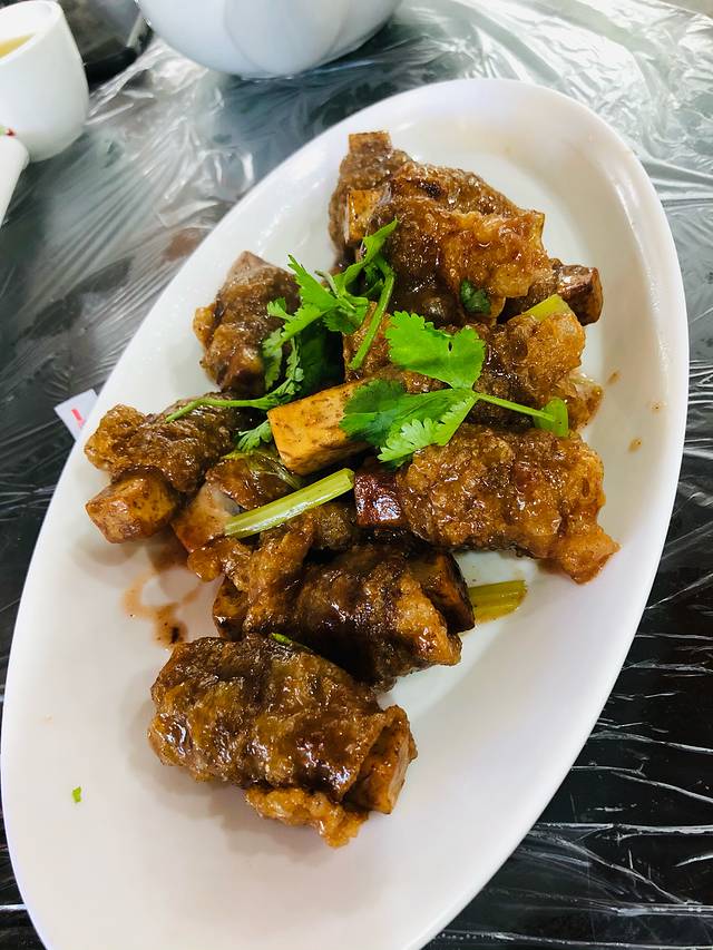 南乳排骨,🦴骨头是芋头条做的,外皮是一层酥鸡的皮,个人感觉炸的过焦了,沟汁后有点皮皮的吃着很粗糙有点扎嗓子,不过第一次尝试南乳的味道还是可以的。