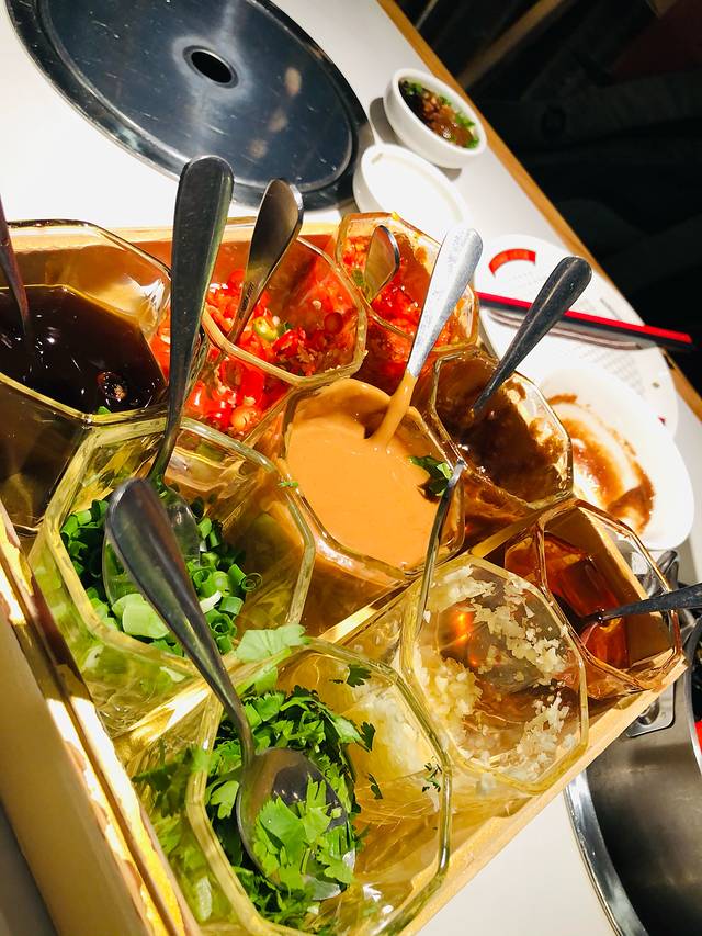 自己搭配蘸料,会给每桌端上来,不用去小料台自取那些。