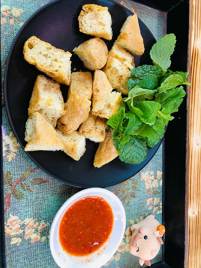 炸豆腐店家配了薄荷叶,口感就正常水平吧