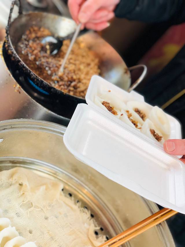 光芒饺🥟里面是馅儿是凉薯,胡萝卜🥕,猪肉。吃起来脆甜脆甜的,第一次吃这种馅儿。不过感觉煎饺稍微有点儿油大。