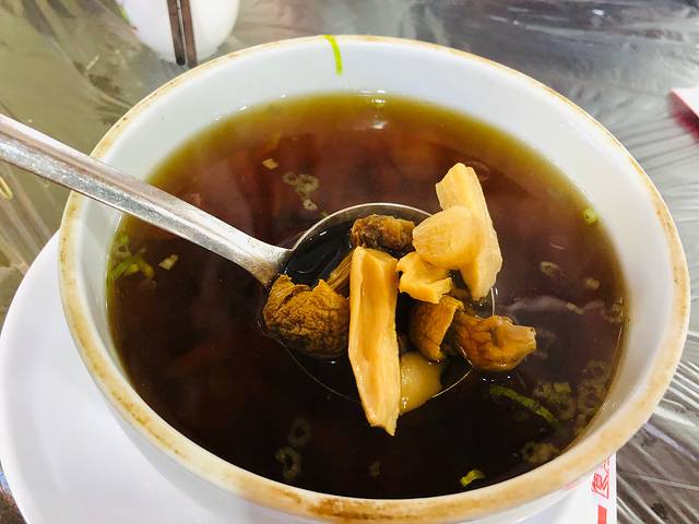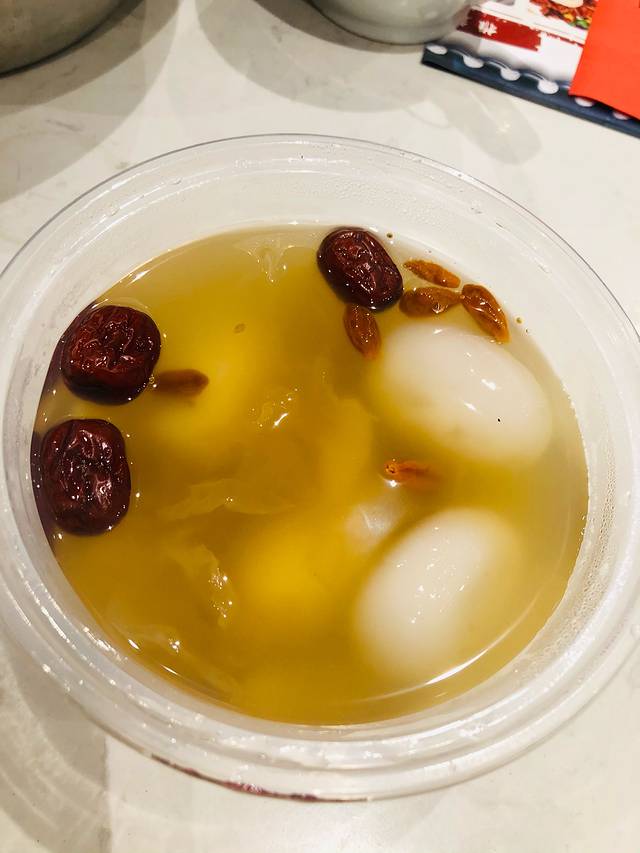 鸭母捻好像又叫甜汤。就是汤圆,里面包花生馅儿或者芝麻馅儿或者Q弹的像芋圆的馅儿,汤底就像广东的糖水,配料银耳,枸杞,红枣,薏米,百合,可能不同家的配料有所不同吧,整体就是想象中的味道,感觉没什么太特别。