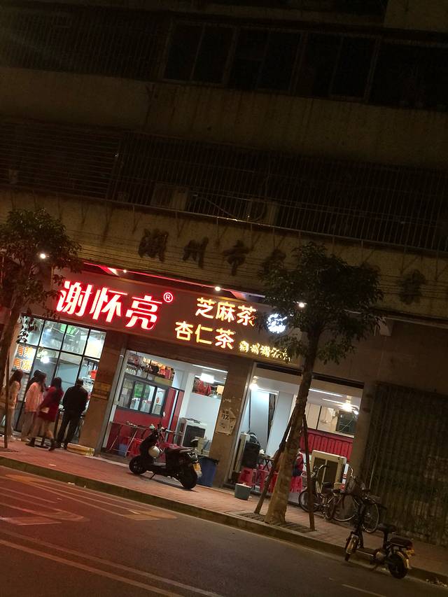 在潮州西湖北门对面,晚上快十点去的,看的很多本地人去喝,还有点炸豆腐和炸串儿吃的 。感觉潮州的杏仁茶,芝麻茶会和北京的茶汤差不多,但是没有那么多配料,更注重杏仁的原味儿。