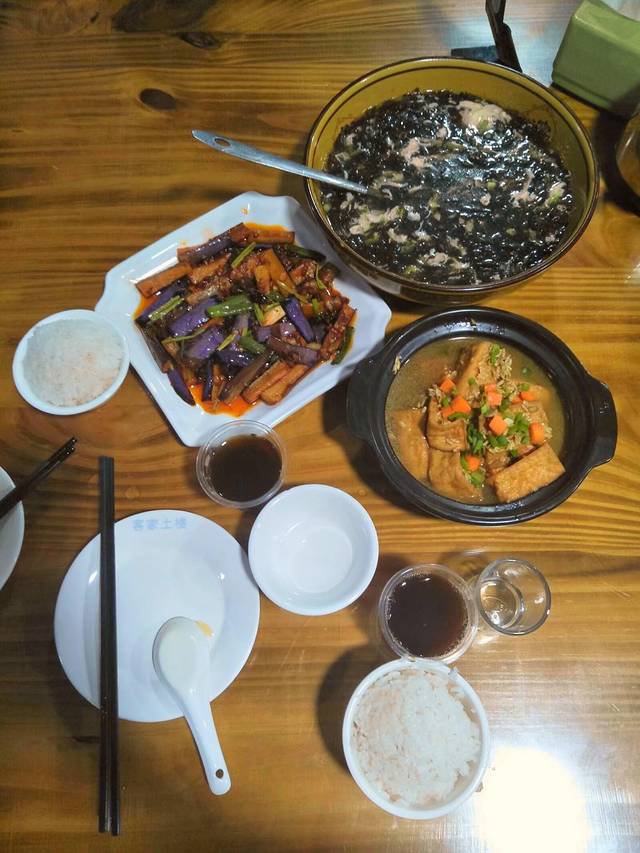 而龙岩最有名的,就是土楼了。建议提前订好开往土楼的大巴(是土楼不是永定,我们去的民俗文化村,土楼选一代表就够了),晚上抵达到目的地,可以联系民宿老板来接。不得不吐槽饮食好贵,这一桌都一百多,客家特色的糯米酒慎入。