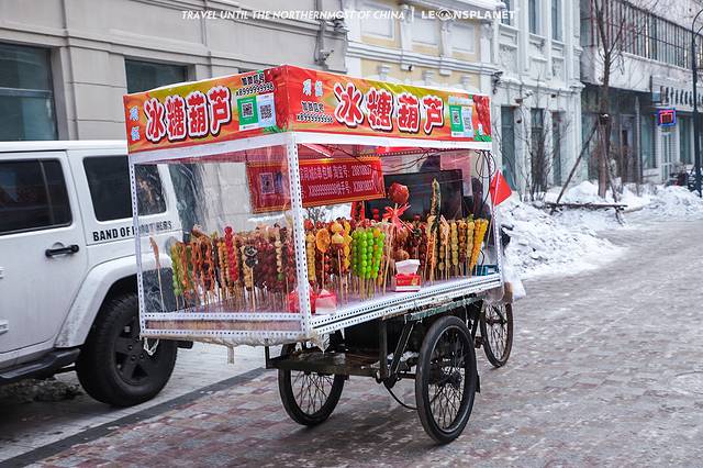 从 吉林 转战到 哈尔滨 之后,我们发现哈市的大街小巷随处可见卖糖葫芦的商店和摊贩。