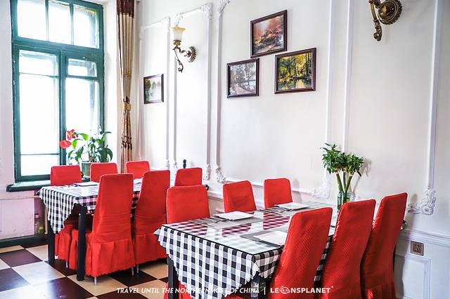这家餐厅不仅地理位置优越(就在哈工大斜对面,哈尔滨站正前方),而且「店如其名」地修在一栋老洋楼里,外观古拙规整,内饰典雅精致,一派清新的俄式风情。