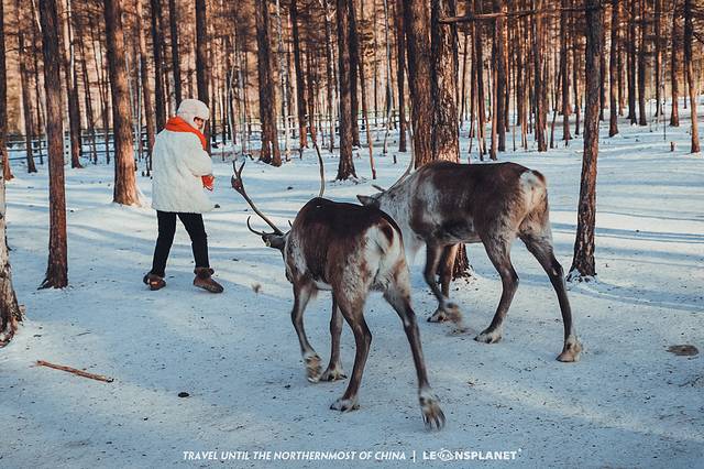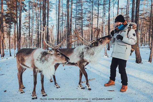 其实,大强哥说的好玩儿的地方,也不是很稀奇,就是在大兴安岭林区开辟的一小块驯鹿园,而去过好几次东北的我,也不是第一次看驯鹿了……不过,我发现之前在夏季的呼伦贝尔跟冰天雪地的漠河感受还是很不一样的。