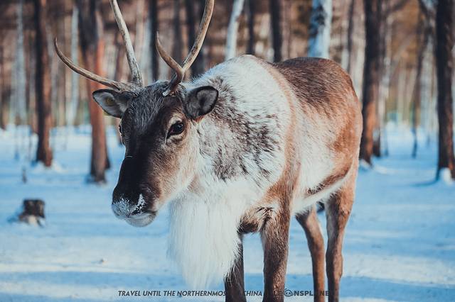 毕竟是雪地精灵,冬天才是驯鹿们的主场,越是寒冷,它们越是长得健硕威猛。一身厚实的皮毛,棕白相间,头上顶着树杈般的犄角,气宇轩昂……这配色和模样简直就是为林海雪原而生的。