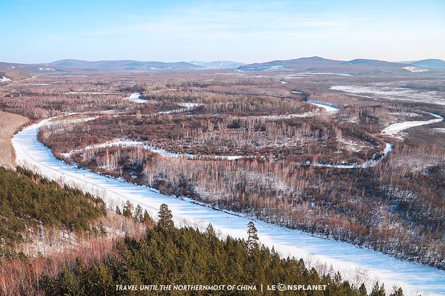 漠河给我们的惊喜还在继续,最后一道风景,得爬上五层楼高的木制观景台,才能望见整片九曲十八弯的湿地保护区——中国最北的河流湿地。