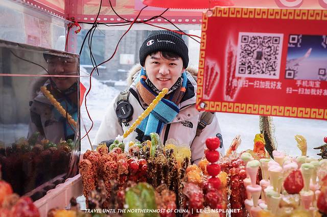 话说冬天在 哈尔滨 街头,一定要来一串冰糖葫芦,比夏天吃冰棍还痛快。