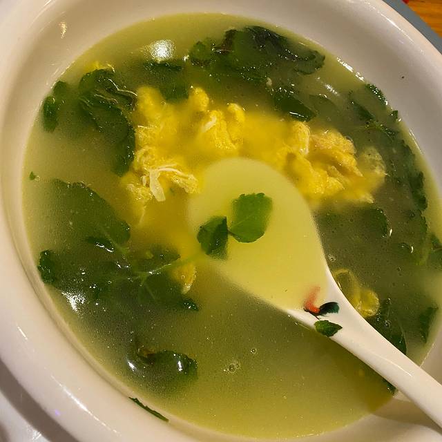 一道薄荷蛋汤深得我心,加上一份炸豌豆粉,黄焖鸡,牛干巴炒饭,再是好吃不过。