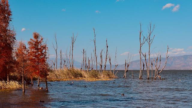 岸边红豆杉,水中野鸭游,看洱海静谧,苍山羞涩;
