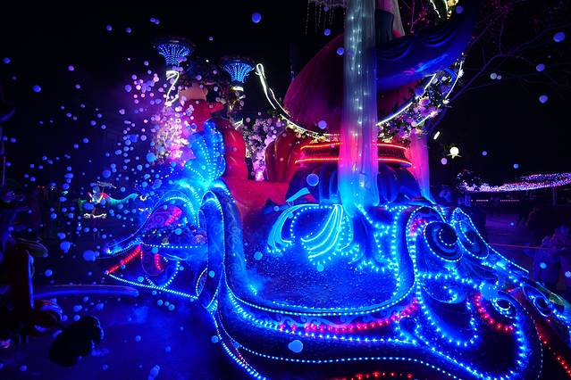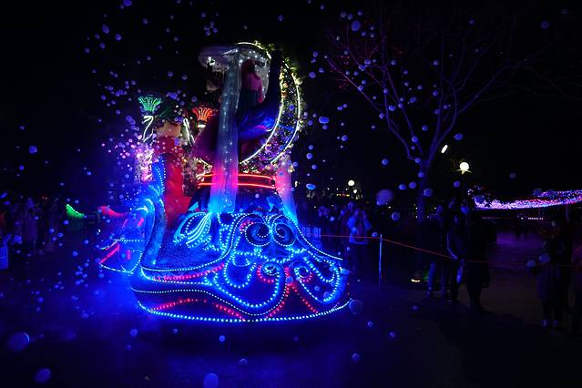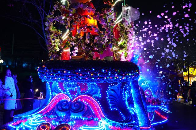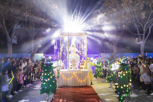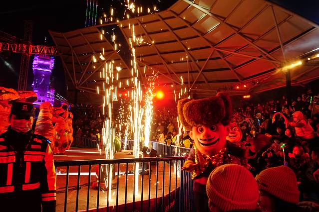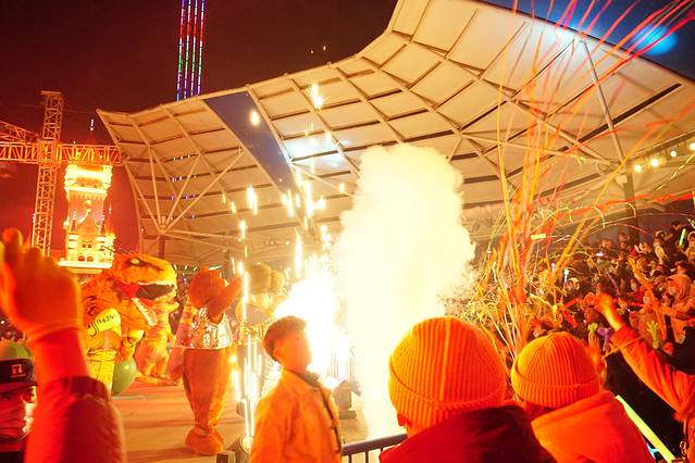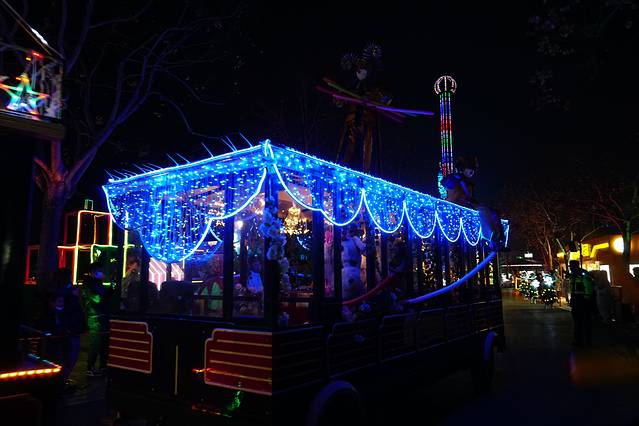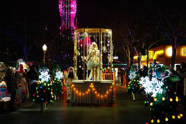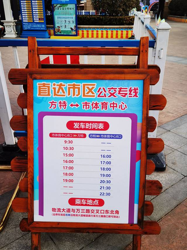 到门口发现 元旦假期有专门的定制公交 才1块钱;由于来之前并没有做详细的攻略,所以不知道这个事情,由于这里离轻轨站还有一定的距离,我们晚上结束的时候选择了退票坐公交车,景区的服务真的很到位,晚上结束之后门口有免费的摆渡车送到定制公交车那里,直接上车,1块钱二十几分钟到。