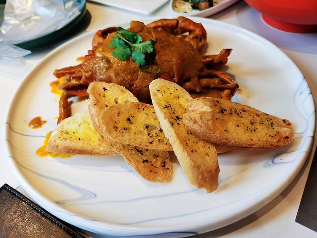蟹子都是新鲜的,三种蟹子自己选择,当面称重。肉质新鲜,咖喱味道融入蟹子中,蟹子的鲜味,搭配烤制酥脆的法棍面包🍞好吃的停不下来。