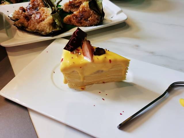 收尾一份幸福甜点,榴莲千层,满满的榴莲酱汁,榴莲控的爱。