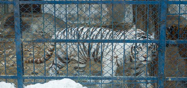 大老虎眼角撇到我们乘坐的普通观光车,连头都懒得动一下,换作惊险车,它们早就熟络的迎上去了。惊险车可以给老虎投食,当然食物要另花钱购买,简直就是虎子们的大型移动餐车。