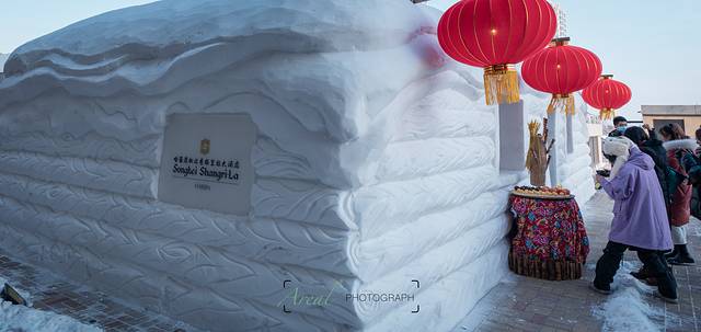 以往每年 哈尔滨 松北 香格里拉 大酒店(以下简称:松香)都会在冬季建冰宫,今年因众所周知的原因,改建雪屋。外观像一座洁白无瑕的小城堡,好像里面住着白雪公主。走进去,emm……大概住的是 东北 公主。